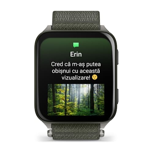 Primeşte e-mailuri, mesaje text şi alerte direct pe ceasul inteligent când este asociat cu un smartphone compatibil iPhone® sau Android™.